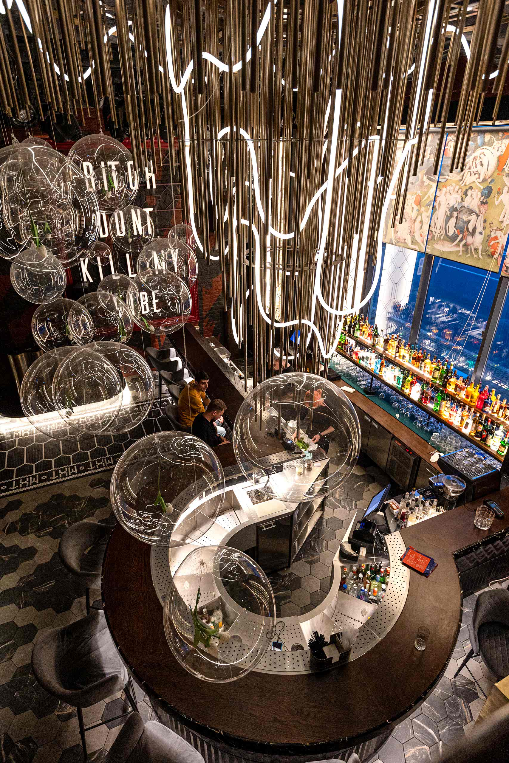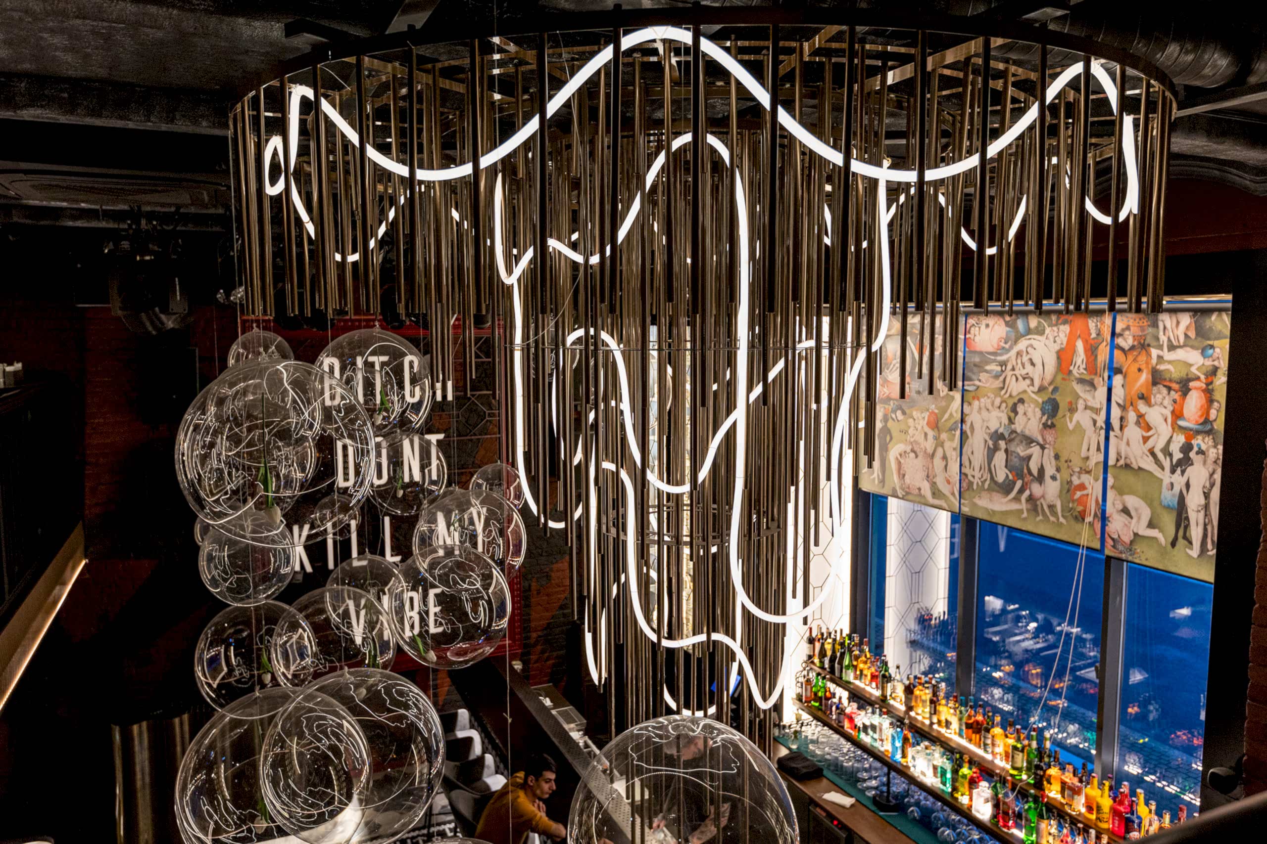 Mixtura Bar — это яркий пример того, как современный дизайн может превратить обычное заведение в место притяжения для искушенной публики. Наша дизайн-студия создала пространство, где каждый элемент работает на создание уникальной атмосферы. Концепция пространства построена на контрасте индустриальных элементов и современных решений. Неоновые вывески, характерные для урбанистического стиля, гармонично сочетаются с эргономичной мебелью премиум-класса. Мы создали не просто бар, а настоящий Instagram-friendly объект, где каждый уголок — это готовый кадр для социальных сетей.